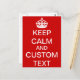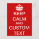 Entwerfen Sie Ihre eigene Postkarte "Keep Calm and Carry On" mit dieser einfachen Vorlage und Anleitungen. Inspiriert von einem antiken britischen Poster-Slogan des Zweiten Weltkriegs, sind "Behalt Calm" Designs sehr trendig und beliebt. Benutzen Sie das Feld "Personalisieren", um es ganz einfach zu Ihrem eigenen zu machen. Selbst die weiße Krone kann "verändert" werden, wenn man eine eigene Grafik hat. Passen Sie die Textfelder an, um zu sagen, was Sie wollen: Ihr Lieblings-Hobby, Ihr Beruf oder Ihr lustiges Sprichwort. Wenn Sie fertig sind, wenn Sie mehr Änderungen vornehmen oder Ihre Größe ändern und Ihren Text nach Ihren Wünschen verschieben möchten, klicken Sie auf "Anpassen" und ordnen Sie das neu. Verfügbar für weitere Artikel in unserem Shop.