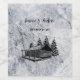 Entwerfen Sie Ihre eigene rustikale Berghütte, ein Hochzeitsweinlabel. Fügen Sie Ihr eigenes Bild auf grauem weißem Felsmuster hinzu und fügen Sie Ihre eigenen Namen hinzu.