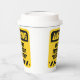 Funny Custom "Warnung, kann anfangen zu reden" Papier Becher für Ihre Geburtstagsparty oder thematische Veranstaltungen! Diese Vorlage enthält ein retrogelbes viereckiges Vorsichtszeichen mit schwarzen diagonalen Streifen und Ausrufezeichen. Beenden Sie den Satz, wie Sie möchten, die maximale Länge ist 13 Zeichen. Teilen Sie mit, wie viel Liebe Sie über Ihre Hobbys, Lieblingssport, Fernsehprogramme, Bücher, Haustiere, fiktive Charaktere, Essen, etc. sprechen.