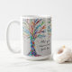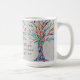 Dieser dekorative Kaffeebecher zeigt einen Mosaikbaum in Regenbogenfarben.