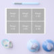 Individuell anpassbare Flyer-Vorlage mit sechs quadratischen Bildraster und 2022 Kalender auf der Rückseite
