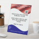 Die obere und untere Kante dieses Desktop-Standes haben ein rot-marineblau-farbenes Bannerbanner-Set vor einer Hintergrundfarbe Ihrer Wahl und Vorlagen in Schwarz-Weiß für Ihre personalisierte Formulierung. Sie können Fotos, Logos, Kunstwerke und Ihre Auswahl an Schriftart, Stilen und Farben hinzufügen. Begeben Sie sich und machen Sie es einzigartig. Erhältlich in verschiedenen Größen.