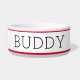 Entwerfen Sie Ihre eigene Schüssel Keramik mit Ihren Schriftart und wählen Sie Ihre eigenen Farbtöne für den oberen und unteren Streifen, Text und Hintergrund, um eine Katze oder Hundeschale zu machen, die zu Ihrer Dekoration oder der Persönlichkeit eines Tieres passt.