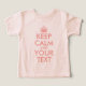 Erstellen Sie Ihr eigenes Design "Behalt Calm and Your Text" für jeden Tee-Stil. Sie können die orangefarbene Farbe des Textes und der Krone ändern. Wenn Sie den Text verkleinern möchten, können Sie alle Designschichten oder -elemente auswählen und die Größe zusammen ändern. Behalt Ruhe und bearbeite deinen eigenen Text.