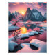 Erleben Sie die majestätische Schönheit des Winters mit diesem Bild eines schneebedeckten Berggipfels, der in warmen Farbtönen einer untergehenden Sonne badet. Die zarten rosafarbenen Kirschblüten fügen eine Touch von Laune und Erneuerung hinzu, was uns daran erinnert, dass selbst in den kältesten Tiefen das Versprechen des Frühlings anhält.
