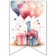 Erster Geburtstag - Aquarellgeschenke und Ballons Wimpelkette