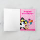 1. Geburtstagskarte mit lustigem Clown, Pinguin und Eiscreme und Ballone, auf einem blauen Hintergrund. Personifizieren Sie leicht diesen Entwurf, indem Sie den Text addieren oder ändern.