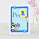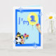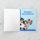 1. Geburtstagskarte mit lustigem Clown, Pinguin und Eis und Ballons auf blauem Hintergrund. Personalisieren Sie dieses Design einfach, indem Sie den Text hinzufügen oder ändern.