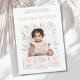 Feiern Sie Ihr erstes Jahr mit einer Touch von Eleganz und Charme! Diese wunderschön gestaltete Einladung zum ersten Geburtstag besticht durch einen zarten Rahmen aus weichen, blassrosa Blütenblättern und sanften, blassgrünen Blätter, die sich perfekt in das Foto Ihres Geburtstagsmädchens einpassen. Unterhalb des Fotos präsentieren drei ordentlich gestaltete Kisten alle wichtigen Party-Details mit Klarheit und Stil. Von Datum und Uhrzeit bis Ort und UAWG macht diese durchdachte Gestaltung es den Gästen leicht, an der Feier teilzunehmen. Personalisieren Sie Ihre heutigen und lass die Schönheit der sanften Blumen und Erinnerungen laden Ihre Lieben zu einem Tag voller Lachen, Liebe und Spaß!