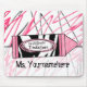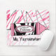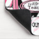 Ein mousepad, das einen Hintergrund der rosa und schwarzen Zeichenstift-Gekritzel kennzeichnet. Illustration des Zebradruckes und des rosa Zeichenstifts in der Mitte. Text auf Zeichenstift liest "erster Grad-Lehrer." Personifizieren Sie mit Ihrem Namen über bloßem Abschnitt unter Zeichenstift.