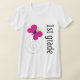 Für den 1. Gradlehrer oder den Schulstudenten hat dieser niedliche rosa Schmetterlingsentwurf Slogan des ersten Grades. Kunst C. Ne Metzger.