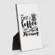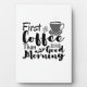 Richtig für den Kaffeeliebhaber. Für diejenigen, deren Tag beginnt, aber nach dem Kaffee. Der Süchtige. Es ist in Schwarz-Weiß-Tönen, First Coffee Than Morning!