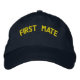 Erster Freund, Yacht Crew Text in gelb. Passen Sie den Stil und die Größe des Schriftartes an und wählen Sie Ihre Threadfarbe aus einem großen Bereich. Besuchen Sie die CUSTOMTHREADZ STOREfür eine große Auswahl an vorgefertigten Designs, für Bootfahrer und Segelmitglieder Crew.