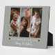 Personalisieren Sie einen einzigartigen Sake für eine junge Mutter, die ihren ersten Muttertag feiert, mit dieser schlauen, grünen Tischplatte aus drei Fotos. Das Plaque Design verfügt über drei Foto-Platzierungen in Panelform mit moderner Typografie und eleganter Schrift und zwei roten Herzen. Perfekter Foto-Sake für Mama's Feiern ihren ersten Muttertag.