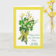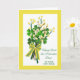 Alles Gute zum ersten St. Patrick's Day! In Ihrer neuen Zuhause, Papier Grußkarte. Schicken Sie irisches Glück und beste Wünsche für den Urlaub mit diesem fröhlichen und hellen Design. Das Bild eines Kleeblatts, die Fotze Weiden und die Frühlingszweige Bouquet. Gerahmt in hellgelb. Art, Bild und Vers Copyright © Shoaff Ballanger Studios, 2021.