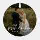 Ein schicker verheirateter Paare Foto Weihnachtsschmuck mit einfachen Skriptkalligraphie erste Weihnachtstypografie und festliche Zweig. Klicken Sie auf die Schaltfläche Bearbeiten, um dieses Design anzupassen.
