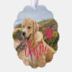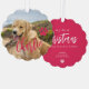 Modern fügen Sie Ihren Haustiernamen Rosa Skript zuerst Weihnachten mit Ihrem Hund Keepake Baum-Ornament Karte.