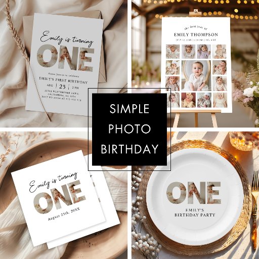Erste Geburtstagsfeier Foto Minimal 1. Geburtstagsfeier Party Einladung