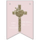 Erstes heilige Kommunions-Kreuz mit Tauben-und Herz-elegantem Goldblick-Kreuz auf weicher rosa Hintergrund-Party-Flaggen-Fahne