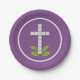 Perlweiße Kreuze auf grünen Grüntönen auf lila Tellern im Format 7" oder 9". Perfektes Design für Erste Kommunion, Taufe, Weihnachten, Dedication oder jeden religiösen besondere Anlass. PASSENDE Artikel in unserem Geschäft.