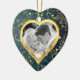 Erstes WeihnachtsFoto-Verzierungs-Goldherz-Blau Keramik Ornament