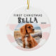 Erste Weihnachten Pink Wasserfarbe Welpe Hund Foto Ornament. Der Hintergrund ist Aquarellpinke Streifen. Personalisieren Sie das Ornament mit dem Foto, dem Namen und dem Jahr Ihres Hundes. Sie können es für jedes Tier verwenden. Ein toller Urlaubssake für Sie oder ein Geschenk für Ihre Familie und Freunde.