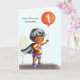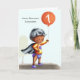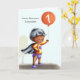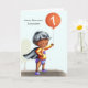 Niedliche personalisierte Geburtstagskarte für jedes Alter. Personalisieren Sie einfach den Ballon mit der gewünschten Nummer. Es ist perfekt zum ersten Geburtstag, weil die Abbildung ein Baby in einem Superhelden-Kostüm ist. Illustriert und entworfen von Patricia Alvarez.