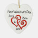 Gebundene rote Herzen auf weißem Hintergrund und personalisierte Namen & Datum.