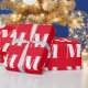 Modernes, rotes und weißes, individuelles Monogramm Muster Geschenkpapier. Passen Sie alle Geschenke mit ihrem individuellen Brief, initial an. Ideal für Weihnachten, Feiertage und Geburtstage