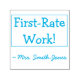 Dieses inspirierende Gummi Briefmarke Design zeichnet sich durch die motivierende Feedback-Nachricht "First Rate Work!" und einen personalisierten Tutor-Namen aus. Es könnte von einem Lehrer oder Erzieher verwendet werden, wenn er Aufgaben markiert, um anzuerkennen, dass ein Schüler gut abgeschnitten hat.