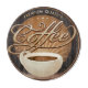 Erstklassiger Kaffee in einem stilisierten Entwurf mit einem Sonnendurchbruchstrahl und einem Tasse Kaffee