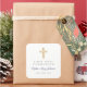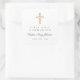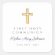 Personalisierte moderne Navy Blue Cross First Communion Square Sticker. Teil der Religious Cross Navy Blue Boy First Communion Collection Suite mit passender Einladung, Schreibwaren und erstem Communion Party Zubehör.