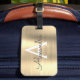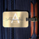 Luxuriöse goldgegossene Metallfolie Monogram Name und erste Gepäckmarke. Diese Taschenmarke ist ideal für Zurück in die Schule, Arbeit oder Reisen.