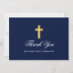 Elegante Erste Heilige Kommunion Dankeschön Karte mit Gold Cross. Blaue und weiße Streifen mit Goldkreuz.