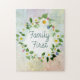 Familie zuerst. Inspiration Zitat mit Blumenkranz.