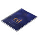 Ein marineblau Hintergrund, goldfarbener und weißer Text. Die blaue Farbe ist ungleichmäßig. Personalisieren und fügen Sie Ihr Logo, Monogramm Initialen, Namen und Titel.
