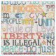 Ursprünglich mit Tinte gezeichnet, politische Typografie-Muster, einschließlich Erwachen, Aufstehen, Einheit, Wählen, Macht für das Volk, Rechtsstaatlichkeit, keine Könige, Freiheit, kein Mensch ist illegal, keine Gerechtigkeit, kein Frieden, ordnungsgemäßes Verfahren, Protest und Demokratie.