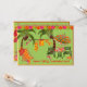 Die Party Einladung des Cocktail-Pools in tropischem Grün, Gelb und Orange mit Liegestühlen, Bademänteln zwischen zwei Palmen, Flip Flops und Cocktailbrillen mit Sonnenschirmen!