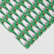 Ein Muster niedlicher Illustrationen eines erwachsenen Pinguins und eines Babypinguins mit Weihnachtsmannmützen zwischen Schneeflocken vor grünem Hintergrund.