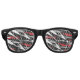 Retro-Party-Schattierungen mit einem abstrakten Schwarz-, Rot- und Weißabdruck in Erwachsenengröße mit schwarzen Rahmen. Kundenspezifisch anpassen oder kaufen, wie es ist. Stock Print