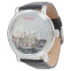 Uhr, Klassische Damenuhr mit schwarzen Lederarmband