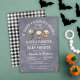 Niedliche Halloween-Babydusche mit Zitat "Es braucht ein Spuk Dorf, um ein kleines Monster zu züchten". Mit 3 bezaubernden Babyspielzeugen, Teddybären und grauen Spinnennetzen auf grauem Aquarellhintergrund. Enthält ein schwarz-weiß kariertes Muster auf der Rückseite der Einladung. Das lädt die Sets zum Vergnügen und zum unheimlichen Herbstfest ein, bei dem die Mama-to-be geehrt wird. Vollständig anpassbar mit Name, Datum, Ereignisdetails und uAwg. Ideal für Familien, die im Oktober eine festliche Jungen- oder Mädchendusche planen.