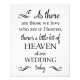 Diese schöne Gedenktafel wird eine besondere Art sein, diejenigen zu ehren, die für immer in Ihren Herzen sind. Das Design enthält den Wortlaut "Da gibt es diejenigen, die wir Liebe sind im Himmel, gibt es ein wenig Himmel auf unserer heutigen Hochzeit" in einer Kombination aus schwarzem Swirl und Block-Schriftart. Schwarze wirbelfarbene Akzente vervollständigen das Zeichen.