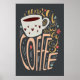 Es gibt immer Platz für eine Illustration der Kaffeemaschine. Farbenfrohe Schrift-Poster mit Zitat, Tasse, Herz, Blume und Blätter. Vintage, beige Kalligraphie auf dunkelgrünem Hintergrund.