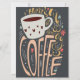 Es gibt immer Platz für eine Illustration der Kaffeemaschine. Farbenfrohe Schrift-Poster mit Zitat, Tasse, Herz, Blume und Blätter. Vintage, beige Kalligraphie auf dunkelgrünem Hintergrund.