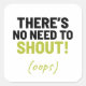 Es gibt keinen Grund, Witz zu schreien Quadratischer Aufkleber