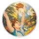 Eine fröhliche Szene entfaltet sich, als ein lächelnder Mann ein erfreuliches Baby vor dem Hintergrund eines lebendigen Herbstwaldes mit einem Kaskadenbach hebt. Sonnenlicht filtert durch die Bäume und hebt die Wärme und das Glück des Augenblicks hervor. Digitale Kunstfotografie CS5