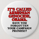 Obama ist solch ein Lügner. Bei der Werbetätigkeit, versprach er wiederholt, den armenischen Genozid zu nennen, was er war: Genozid. Aber, nun da er mehrfache Gelegenheiten gehabt hat, gerade das zu tun, hat er abgelehnt, durch zu folgen und stattdessen entschieden, es zu nennen Sachen wie "eine der schlechtesten Grausamkeiten" des 20. Jahrhunderts und "des verheerenden Kapitels" in der Geschichte. Drücken Sie Ihre Gefühle mit diesen Anti-obama-Waren aus: Es hat ArmenianGenozid, Obama genannt. Haben Sie Ihr Kampagnenversprechen vergessen?