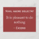 Eine rötlich-rosa Postkarte mit einem lateinischen Satz. "Es ist angenehm, nichts zu tun", durch den römischen Anwalt Cicero. In der heutigen geschäftigen Welt ist es wichtig, sich etwas Zeit zu nehmen, nichts zu tun und sich zu entspannen.