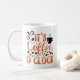 Es ist Coffee O'Clock in Orange mit schwarzen Akzenten - Kaffeetasse und Kaffeebohnen.